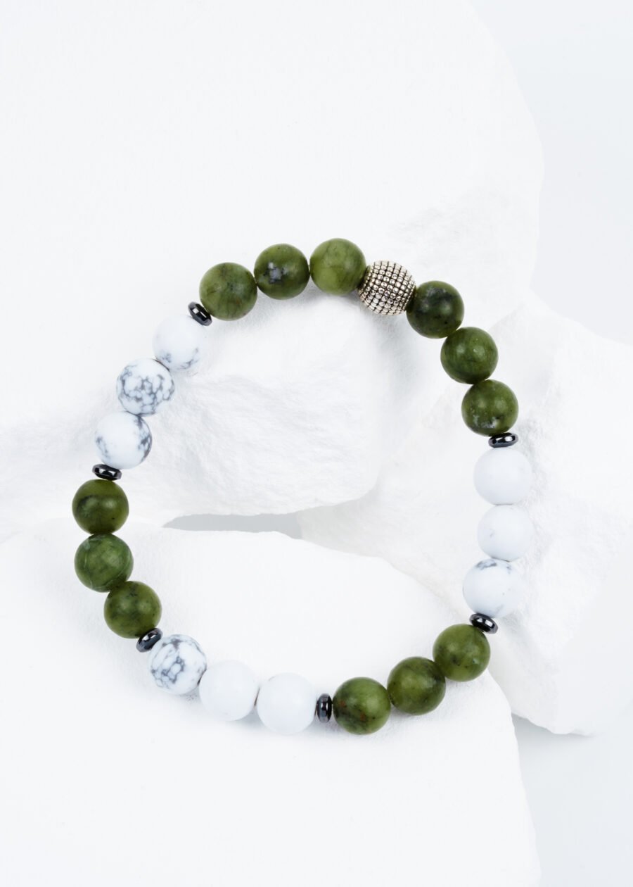 Yeşim’in ruhsal denge ve şifa enerjisi, Havlit’in sakinleştirici ve zihinsel açıklık sağlayan etkisi, Hematit’in koruma ve odaklanma desteğiyle birleşiyor. Bu bileklik, hem zihinsel hem ruhsal enerjiyi dengelemek ve iç huzuru artırmak isteyenler için ideal bir seçimdir.