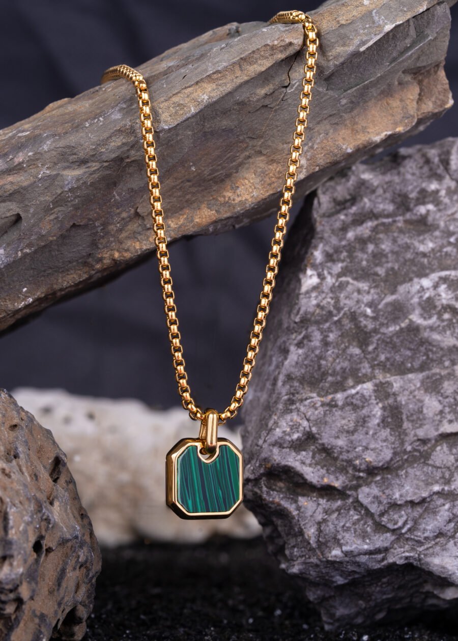 Malakit Doğal Taş Premium 316L Çelik Altın Kaplama Kolye